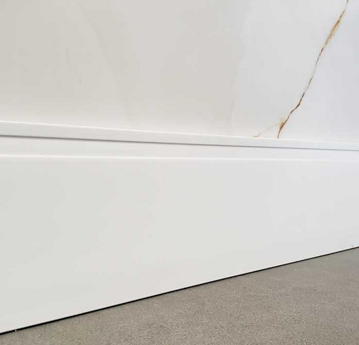 Rodapé de poliestireno extrudado em barras de 2.40 m de comprimento com superfície lisa , altamente resistente e indicado para áreas secas e molhadas.